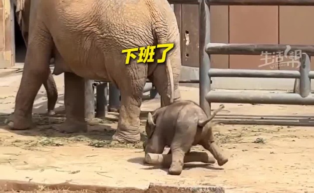 濟南動物園小象中午休息 執勤民警幽默引導游客